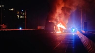 मोतीचूर फ्लाईओवर पर कई वाहनों में लगी आग, महिला की मौत, कई घायल