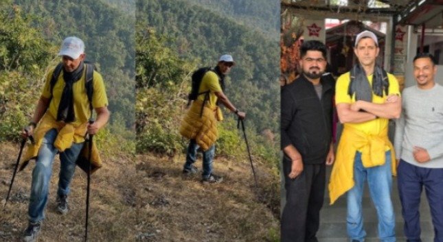 ऋतिक रोशन स्टिक लेकर पहाड़ों पर ट्रैकिंग के लिए निकले। ट्रैकिंग करते हुए वह देहरादून से 15 किमी ऊपर पहाड़ों पर स्थिति संतला देवी मंदिर पहुंचे, जहां उन्होंने दर्शन किए।अभिनेता ऋतिक रोशन उत्तराखंड पहुंचे थे। उन्होंने देहरादून में पहाड़ों पर ट्रैकिंग की। इसके बाद वे संतला देवी मंदिर में पहुंचे और दर्शन किए। अभिनेता को देखते ही लोगों ने उनके साथ खूब सेल्फी ली।बृहस्पतिवार को ऋतिक रोशन स्टिक लेकर पहाड़ों पर ट्रैकिंग के लिए निकले। ट्रैकिंग करते हुए वह देहरादून से 15 किमी ऊपर पहाड़ों पर स्थिति संतला देवी मंदिर पहुंचे, जहां उन्होंने दर्शन किए।इसके बाद उन्होंने सोशल मीडिया पर इसकी तस्वीरें भी साझा की। तस्वीरों में ऋतिक रोशन स्टिक लेकर पहाड़ों पर ट्रैकिंग करते दिखे। सोशल मीडिया पर उन्होंने पोस्ट की जिसमें लिखा कि ‘ऊबड़-खाबड़ रास्तों पर ट्रैकिंग ये मेरा दिल खुशी से झूम उठता है’।