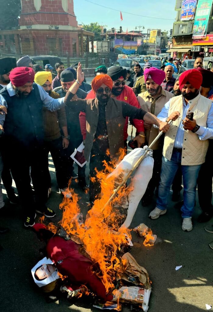 देहरादून के सिख समाज द्वारा चढ़दीकला वालंटियर्स संगठन के बैनर तले वरिष्ठ कांग्रेस नेता हरक सिंह रावत द्वारा सिख कौम के बारे में आपत्तिजनक टिप्पणी के खिलाफ घण्टाघर पर हरक सिंह रावत का पुतला दहन करके विरोध प्रदर्शन किया गया।पार्षद व अल्पसंख्यक आयोग के पूर्व सदस्य संतोख सिंह नागपाल ने कहा कि आज बहुत ही चिंताजनक और अत्यंत ही दुखद विषय है।एक तरफ तो हम श्री गुरु तेग बहादुर साहिब जी के 350 साला शहीदी पर्व को मना रहे हैं जिन्होंने देश धर्म की रक्षा करके अपना शीश दिया पर समाज के कुछ बेगैरत लोग हरक सिंह नाम के सिख कौम की हंसी उड़ा रहे हैं कि ,12 बज गये।पूर्व पार्षद मोंटी कोहली ने कहा कि इस बंदे को शर्म आनी चाहिए कि जब अहमद शाह अबदाली हिन्दू बहु बेटियो को उठा कर ले जाता था तो सिख कौम के जाबांज रात 12 बजे मुग़लो पे आक्रमण करके उन्हें बचाते थे।वरिष्ठ भाजपा नेता बलजीत सोनी ने कहा कि कांग्रेस के दिये 84 के जख्म सिख कौम अभी भूली नही ओर इनके नेताओ के सिख विरोधी बयान सिख कौम के प्रति इनकी नफरत को दर्शाते हैं, व्यापारी नेता गुरजिंदर सिंह आनंद ने कहा कि कांग्रेस पार्टी को ऐसे सिख विरोधी नेताओं को निष्कासित करना चाहिए अन्यथा इसका खामियाजा आगामी चुनाव में कांग्रेस सिख बहुल विधानसभायो में भुगतेगी।प्रदर्शनकरियो में मुख्यतः संतोख सिंह नागपाल,बलजीत सिंह सोनी, पूर्व पार्षद देवेन्द्र पाल मोंटी ,गुरजिंदर आनंद,रविन्द्र आनंद ,गुरदीप कौर,परमजीत सिंह ,मनप्रीत सिंह,गुरप्रीत जॉली,संजीव विज, गुरदीप कौर हरजीत सिंह ,गगन सेठी,रौनक कोहली,,मन्नी अरोरा,संजीव विज,देवेंडरपाल सिंह,वीरेंदर पल सिंह,तरविंदर सिंह,हरमीत सेठी,इंदरजीत भाटिया,बजरंगदल संयोजक विकास वर्मा ,गुरप्रीत सिंह आदि उपस्थित रहे।